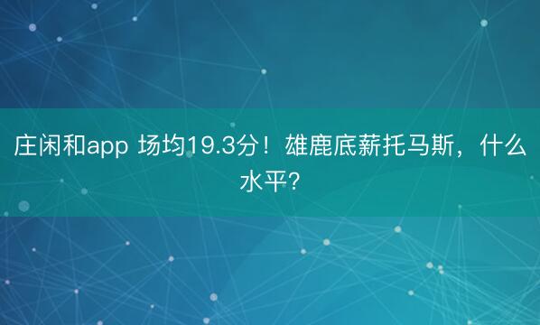 莊閑和app 場(chǎng)均19.3分!雄鹿底薪托馬斯,什么水平?